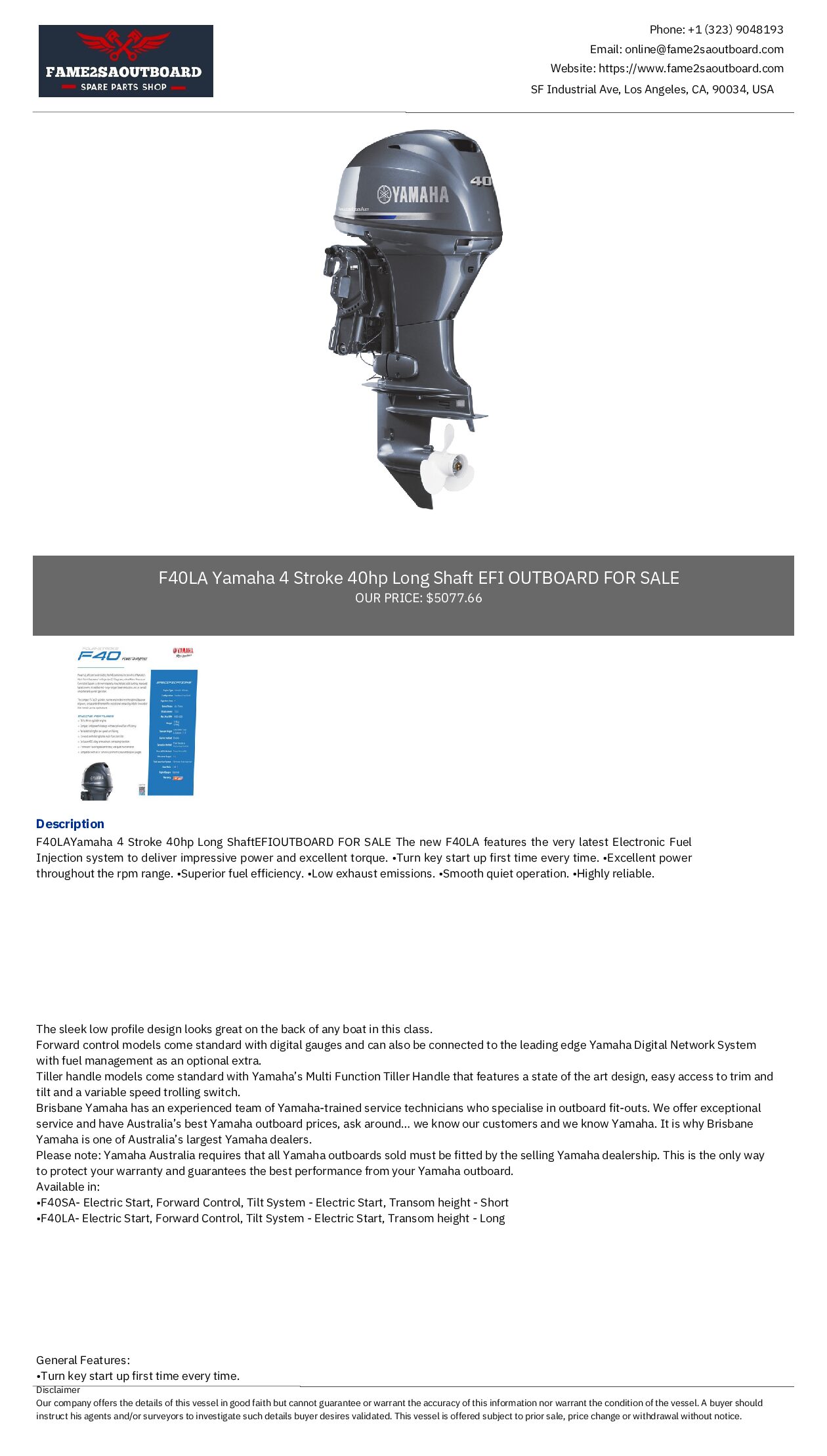 The new F40LA features the very latest Electronic Fuel Injection system to deliver impressive power and excellent torque.