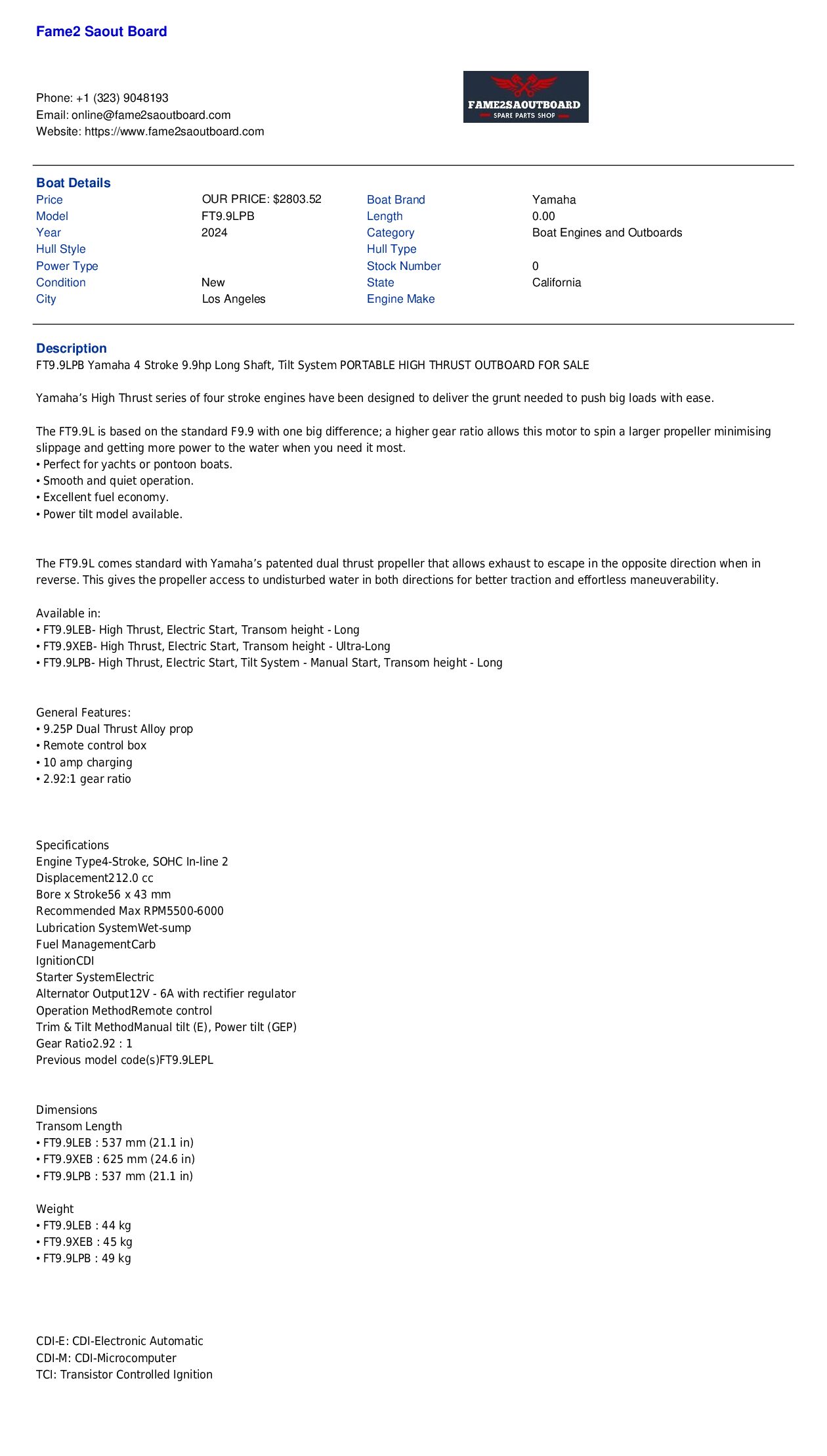 The FT9.9L is based on the standard F9.9 with one big difference; a higher gear ratio allows this motor to spin a larger propeller minimising slippage and getting more power to the water when you need it most.